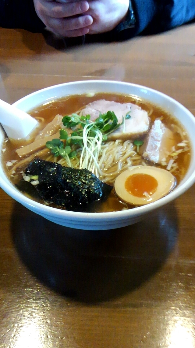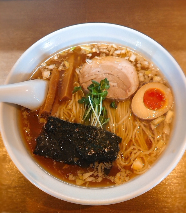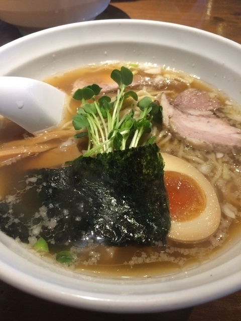 すっきりとした感じの正油ラーメン。 券売機ですが店頭にメニューが置いてあり説明文も記載されているため、選ぶのに役立ちました。