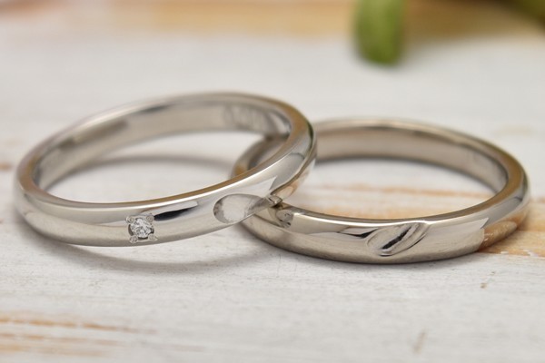 二つの指環を合わせて一つのフォルムになるデザインや、メッセージを込めたもの、