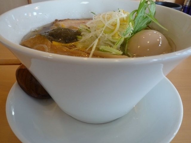塩らーめん+味玉を頂きました♪ 底の深い器で皿の上に載って登場し、琥珀色のスープの中に、穂先メンマ・チャーシュー・ミズナ・ネギ・ 柚子が散りばめられています。 貝・魚・昆布・鶏のダシを感じるあっさり系のスープに腰のあるストレートな細麺が良好です。 麺はどちらかというと蕎麦に近い印象でした。 味玉も程よい味付けで旨い(^^) "男醤油" なるメニューがありましたので、次回はチャレンジしてみたいです♪