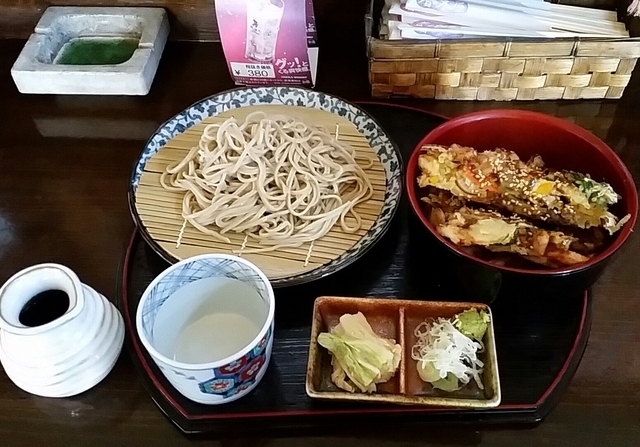◆平日ランチセット980円 そばに、ボリューム満点の 丼がつくセット。 平日は、三種類の丼から、 選べます。 今回は、かきあげ丼。 そばは、常陸秋そば。 毎日手打ち、打ち立ての 風味、香りの良い、 こしのある細麺です。