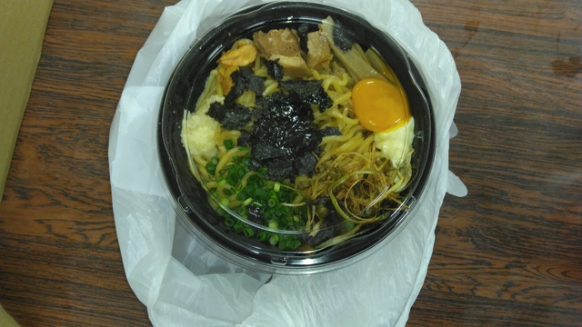 この日はテイクアウトのまぜそばをいただきました。 はじめは味が濃く感じましたが、生卵をとき混ぜて食べるとマイルドになり、するするとあっという間に食べ終わってしまいました。 ごちそうさまでした。