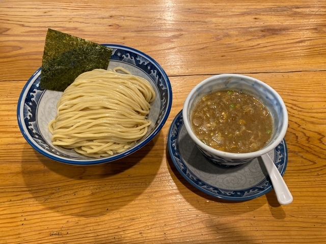 お昼につけ麺(中)をいただきました。 もちもち太麺に濃厚魚介豚骨スープがよく絡みます。 …割りスープで汁まで完食です。