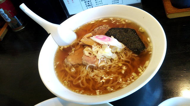 醤油らーめんと餃子を注文です。 らーめんは550円、餃子も250円とコスバが良い♪ 餃子はモチっとしたタイプで、ニンニクが効いてます。大きめの餃子でこの価格はGood! らーめんのスープは鶏ガラベースであっさりシンプル♪ 良いですね~。 麺は平打ち中太で若干ヤワメの仕上がり。 喉ごしが良い感じです♪ 550円なのに柔らかいチャーシューが3枚のってるのも凄いです。 また来たくなるお店です♪