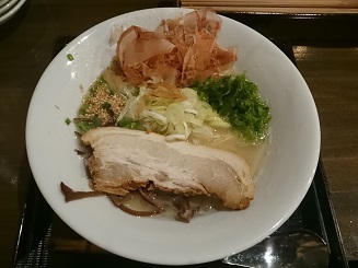 『和節』を注文♪ 鰹節が乗ったとても美味しい豚骨ラーメンでした。 量は少なめなので、替え玉を頼まないと満足感が得られません。 味はとても良かったです♪