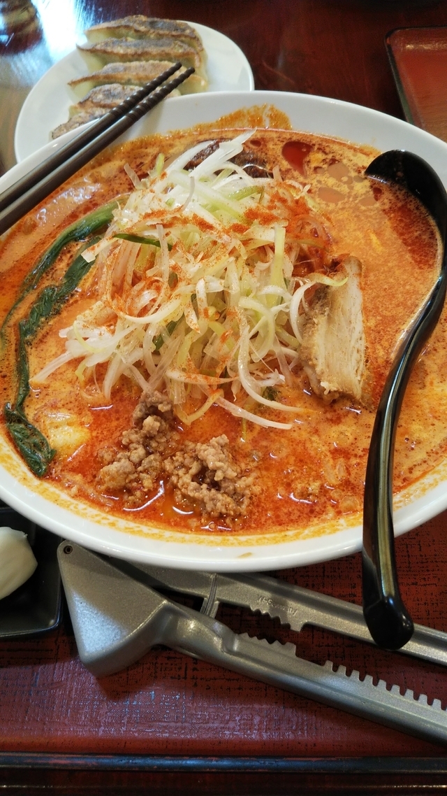 今日はにんにく暴れラーメンでなく辛い気分だったので激辛らーめんを頼みました。 坦々麺がベースなのかな?ニンニクもトッピングして美味しくいただきました。 ギョウザも野菜がシャキシャキで美味しいです。