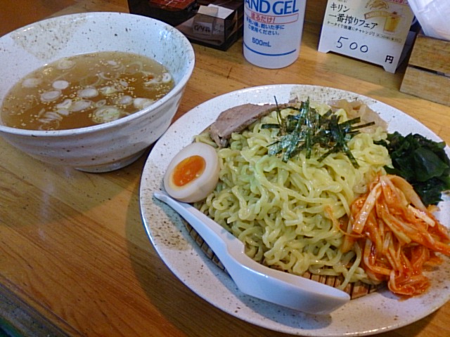 中太手揉み麺はツルリンとした御手前也♪ つけ汁は魚介感は余り伺えず、塩角がややたった印象…あっさりですけどね。 自分的にコ・ス・パをも少しp(^-^)qって頂ければ有難いのですが( ̄ー ̄)