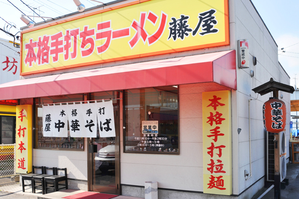 「藤屋」は県内のラーメン店の中でも昭和26年から続く老舗中の老舗です!佐野のラーメンがご当地ラーメンと広く認識される前からずっと、佐野にラーメンを伝えた中国人の下で麺打ちの修行を重ねた主人が、現役で皆様に手打ち麺をご提供しています。適度なコシと独特の滑らかさは、全体重をかけて孟宗竹で打った本当の手打ち麺です。それを包丁で一本一本丁寧に切り分けています。茹で上げるまえの時間は僅か40秒!それが本物の手打ち麺の証拠です。日本のラーメン文化のルーツといっても過言ではない一杯!是非、藤屋で召し上がってください。