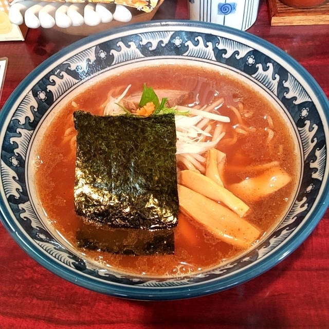 ●中華そば700円 魚介強めのスープが特徴的。 麺は中細麺のやわらかめ。 トッピングには、 モヤシ、メンマ、のりなど。