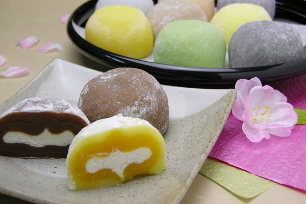 人気の生クリーム大福は生チョコ、マンゴー、チーズ、バナナ、キャラメルマキアート、抹茶など全15種類。