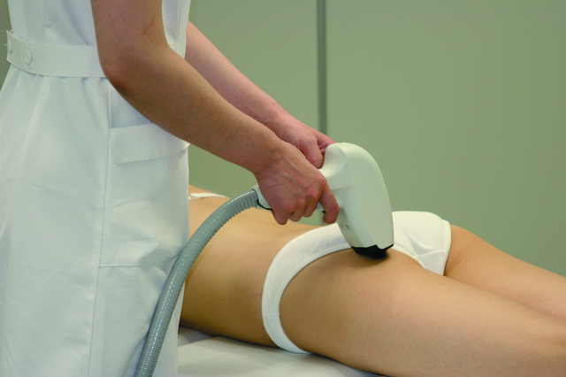高密度収束超音波HIFUで脂肪細胞を、排出しやすいドロドロ状態にしてから、冷却によって脂肪細胞を減少させる部分痩せ法。