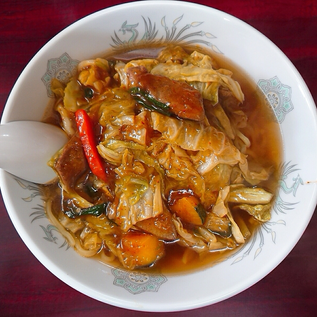 スタミナラーメン初めて食べました。 甘辛のあんにたっぷりの野菜ですね。 お客さんのほとんどは冷しを注文していましたが、冬でも冷やしが人気のようですね。
