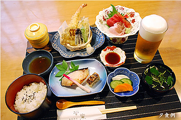 1階には「遊食酒房栄楽」を併設。旬の食材と地魚を使ったお料理をご提供し、ご好評いただいております。