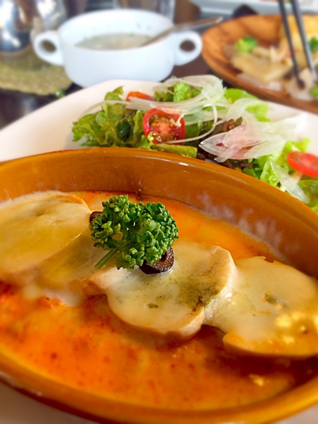 丁寧な接客でお店の雰囲気もよく、落ち着けるスペースです。 平日のお昼頃に伺ったのですが本を読むお客さん、楽しげにお喋りをするお客さんがいて、店内には観葉植物やかわいい雑貨、本棚には芸術関係の本がおいてありました。 ランチはズワイガニのクリームドリア(サラダとスープもセット)を注文。 小腹を満たせるくらいの量ですが、とてもおいしく優しさを感じる味がしました。 午後に用事があったのでランチを食べてすぐ出てしまいましたが、また時間があるときにゆっくりコーヒーでも飲みにいきたいです。