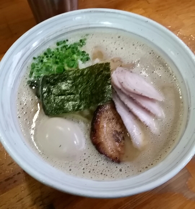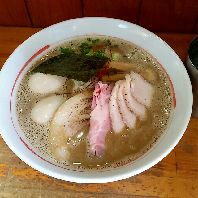 水戸市人気No1。いつも行列の店、麺屋むじゃき。今日は、味玉むじゃきそばを注文。鶏ベースのクリーミースープに、もちもちの麺が合う、完成度の高いらーめんです。
