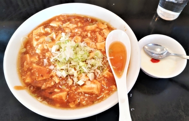 【味噌マーボー麺】950円 十数種類ある麺料理の中から、味噌マーボー麺をいただきました。 麺は自家製の細麺で、マーボー豆腐は、味噌を使っているので味はまろやかで辛みはほとんどありません。辛さがないので、ちょっと物足りなさを感じましたが、最後までおいしくいただきました。杏仁豆腐はサービスで付けてくれました。