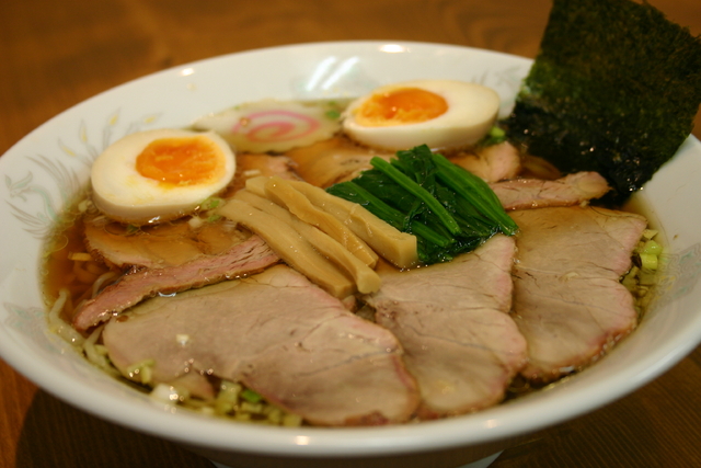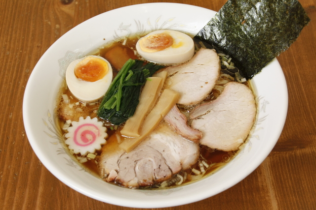 自慢のチャーシューがたっぷり入ってます。 ※写真は半熟煮玉子(100円)がトッピングされています。