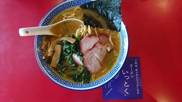 つくばの老舗ラーメン店 いっとくです。 家系の王道、チャーシュー、ふと麺、ほうれん草、海苔ですね。 特にチャーシューはおススメ。これは市内でも3本の指に入るのではと思うおいしさです。 詳しくは下記のサイトで http://lsupport.tsukuba.ch/e254348.html