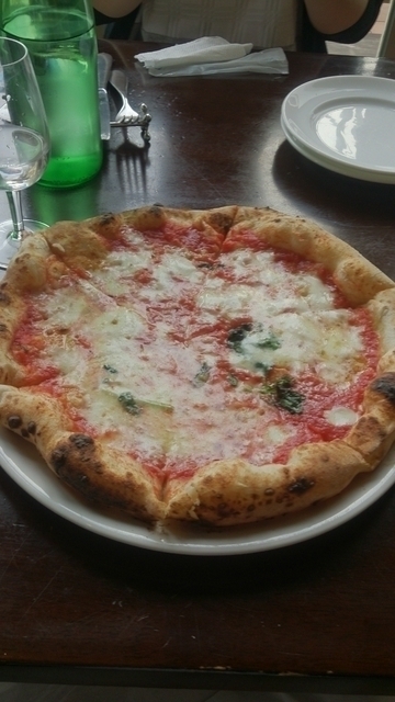 平日のお昼もほとんど空席なし。 でもサーブもはやくふらっと昼食するには助かります。 マルゲリータピザ 大きい うまい!