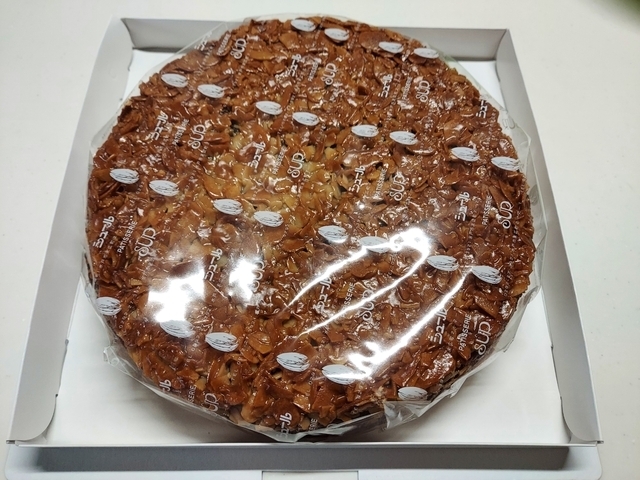 贈答品として、頂きました。ホールケーキが8カットされていてありがたい。15年以上ぶりに食べました。相変わらず美味しかったです。アーモンドがたっぷりで、ボリュームもあります。