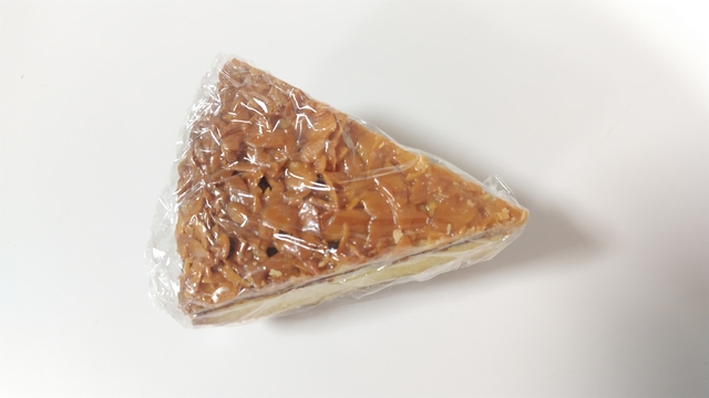 お茶との相性が抜群。お花見のデザートとして、購入しました。層になっていて、一番下のタルト生地も、中央のスポンジも、一番上の固めのスライスアーモンドの部分も、どれも美味しくて、組み合わせばっちりです。