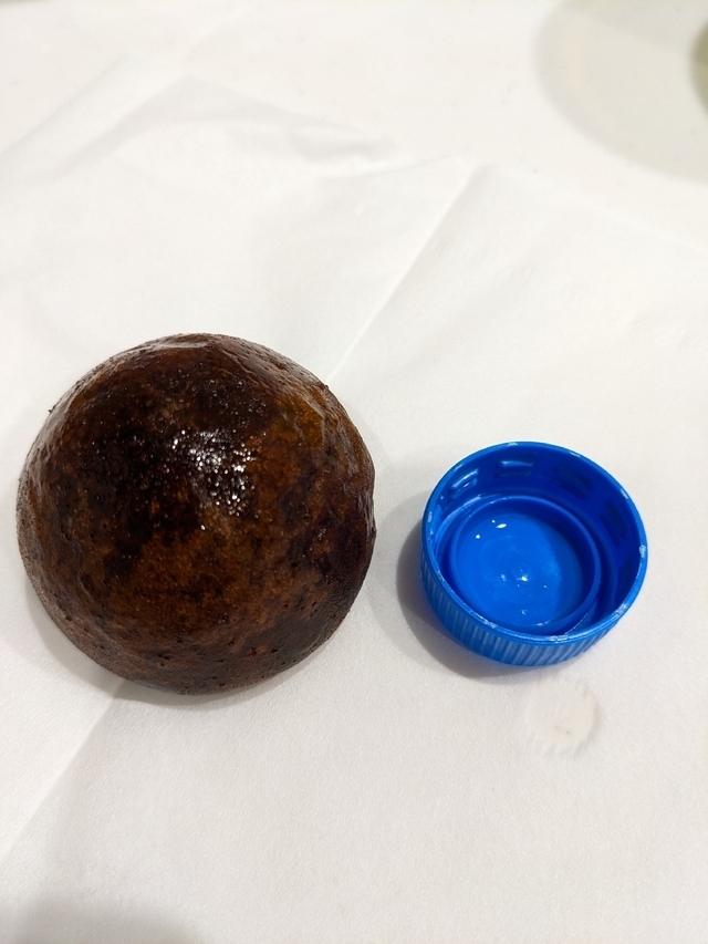 外はカリッとして中は甘すぎず上品な美味しさのあんこがたっぷり入っています。 1つ100円ほどなので、近くを通った際は買いに寄っています。ペットボトルのキャップと大きさ比較。