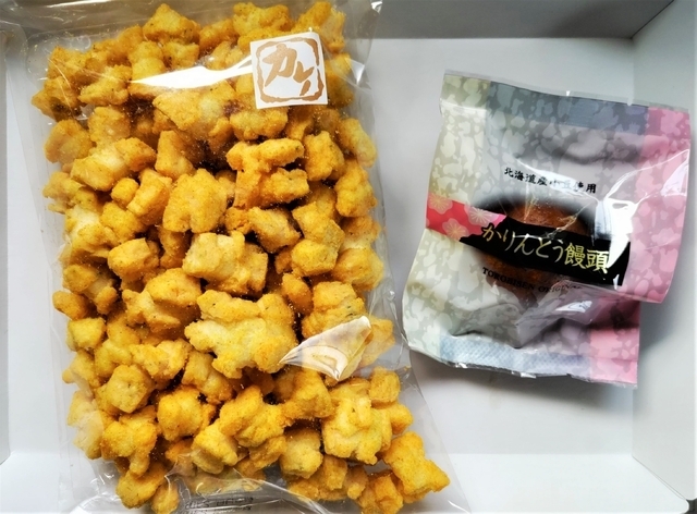 《鏡揚げ&水戸饅》 おかきの『鏡揚げ』と、かりんとう饅頭の『水戸饅』は、おすすめしたい2商品です。 鏡揚げはいろいろな味が楽しめるおかきで、個人的には塩味が1番ですが、今回はカレー味を購入しました。食べ始めると止まらなくなります。(348円) 水戸饅は、表面がカリッとしていて、中のこしあんも上品な甘さで絶品です。(108円)