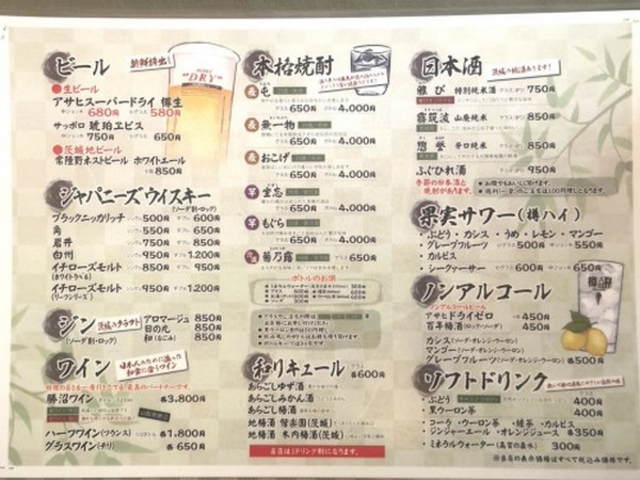 *その他茨城の地酒・厳選した季節の日本酒などもございます。(例:渡船、富久心、結、武勇など) *お燗でもおいしく頂けます *徳利(一合のご注文は100円増しとなります。)
