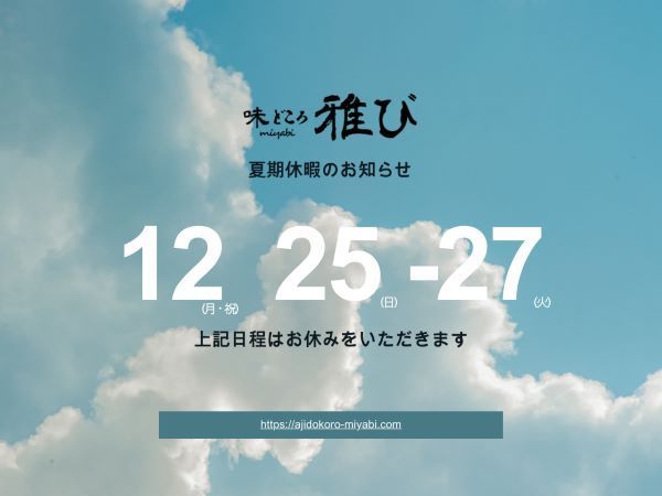 8月25日(日)~27日(火)はお休みとさせていただきます。