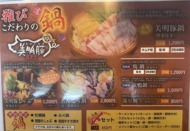 ・鍋(美明豚塩味):美明豚の旨味と野菜でお召上がり下さい。