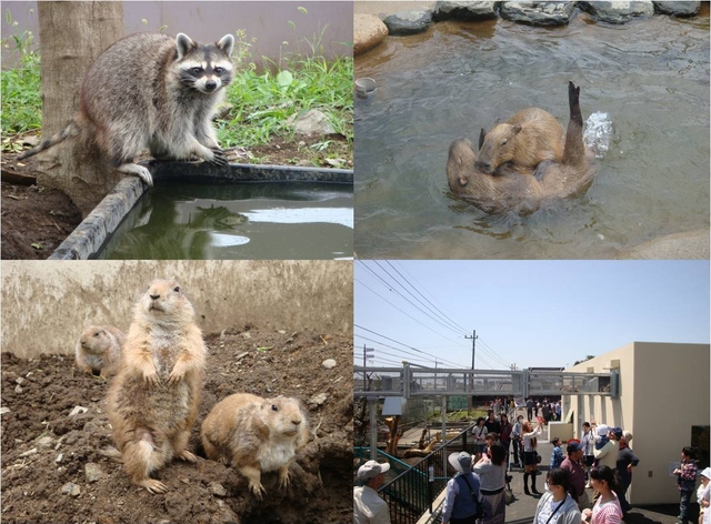 生態がご覧いただけるように工夫した獣舎は好評です。プレーリードックの巣穴や頭上を渡ったたり手を洗うようなしぐさのアライグマなどが大人気!癒し系のカピバラがじゃれ合うすがたもとっても可愛いですよ♪