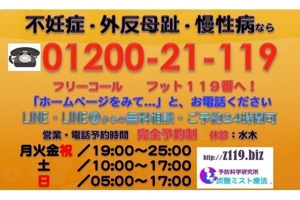 不妊症・外反母趾・慢性病なら… お悩み119番「予防科学研究所」へ!