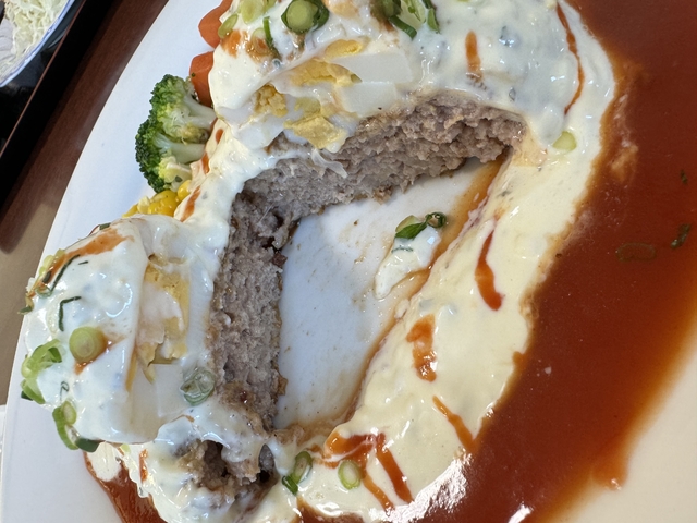 ナポリタンが有名なときわさんですが今日タルタルハンバーグを注文!手作りの肉厚ハンバーグに酸味の効いたタルタルソースがたっぷりかかっていて美味でした!