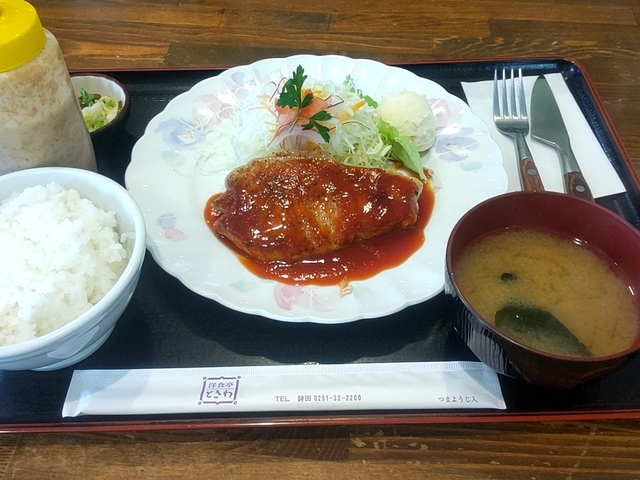 ◆ポークソテー定食 量とソースが選べます。 150gとトマトソースにしました。 分厚くて歯ごたえのある 美味しいお肉とトマトソースが よくあっていて美味しい。 お肉を食べた満足感があります。