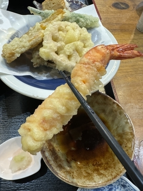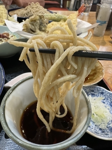 打ち立ての十割蕎麦は、コシがあってつるつる!喉こしが良く,とても食べやすいです。天麩羅の衣もカラッと揚がっていておいしかったです!