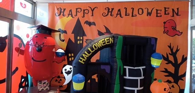 「オープン14周年」でイベントが開催されていました。めんたいグルメ・工場見学が楽しめます。入口のハロウィンのディスプレイに癒やされました!!