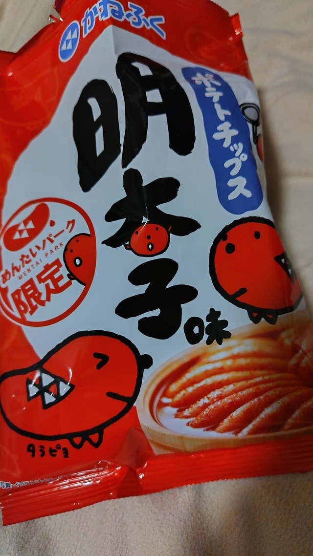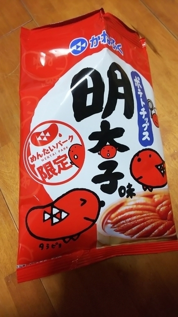 明太子味のポテトチップスです。新鮮!さすが明太子専門店の味!とっても美味しかったです。あっという間に一袋食べちゃいます!おやつに最高でした。キャラクターのプリントもかわいい!