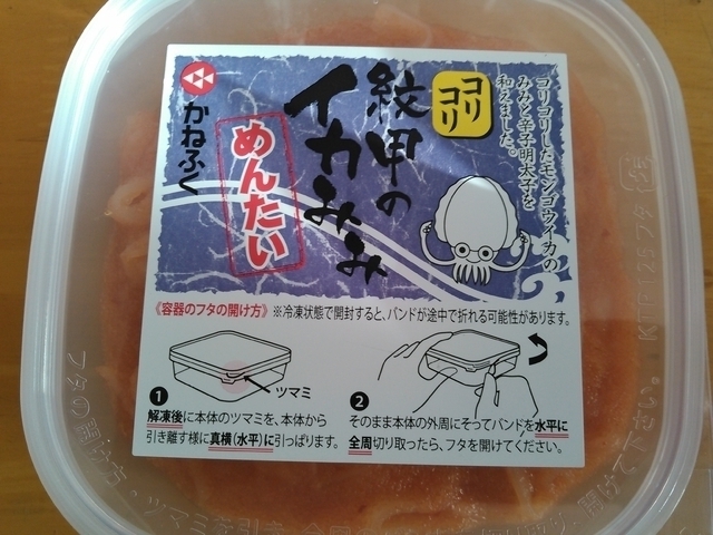 モンゴウイカのコリコリめんたいを発見。 以前はこんなのなかったような気がするのでさっそく買ってきました。 イカ耳のコリコリ感と明太子の辛味が合って美味しいです。 ちなみに540円で安いので是非買ってみて。