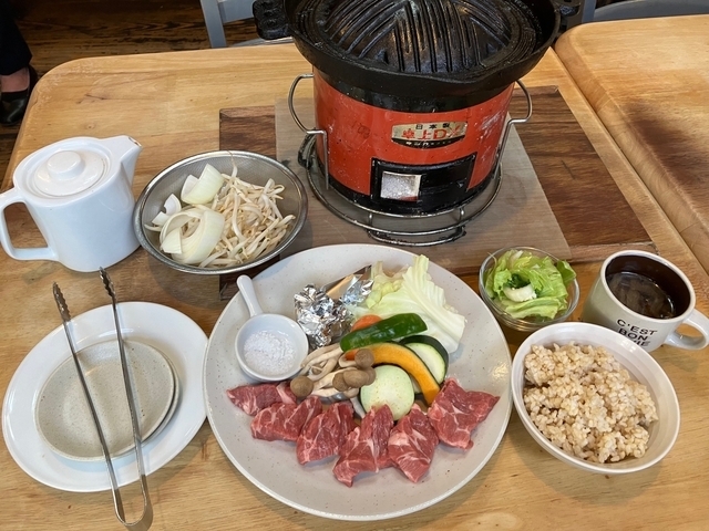 美味しいジンギスカンが食べたくて仲間とお昼を食べに伺いました。ランチメニューのジンギスカンのセットをお願いします。七輪で焼きながら特製のタレでいただく肉がとても柔らかく大満足です。