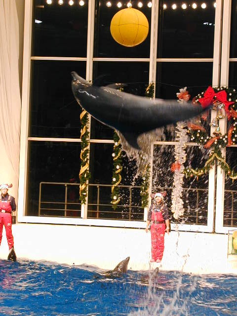 イルカショーが大好きです。何度もても飽きません☆ ショーのプールは下から見ることもできます。客席の地下に降りていくと大きなガラスを通してイルカ達が泳いでいるのが良く見えます。達頑張って泳いで大ジャンプをしています。
