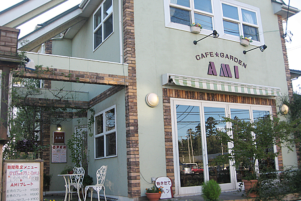 ライトグリーンの外観が目印。季節の花々が咲き揃う。店内もナチュラルで居心地のいい雰囲気。