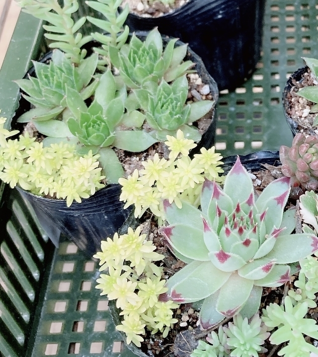 休憩で立ち寄りました。以前はあまりみることのなかった直売所の店先ですが、よくみると花の苗木やメダカなど珍しいものもたくさんありました。こんな可愛らしい多肉植物まで。色々探してみるのも楽しいですよ。