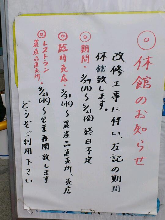 現在、道の駅では3月29日~5月21日の予定で改修工事が行われています。 農産品直売所と売店は仮設で営業していましたが、レストランは4月21日まで休業になるようです。 立ち寄りを予定している方はお気をつけください。