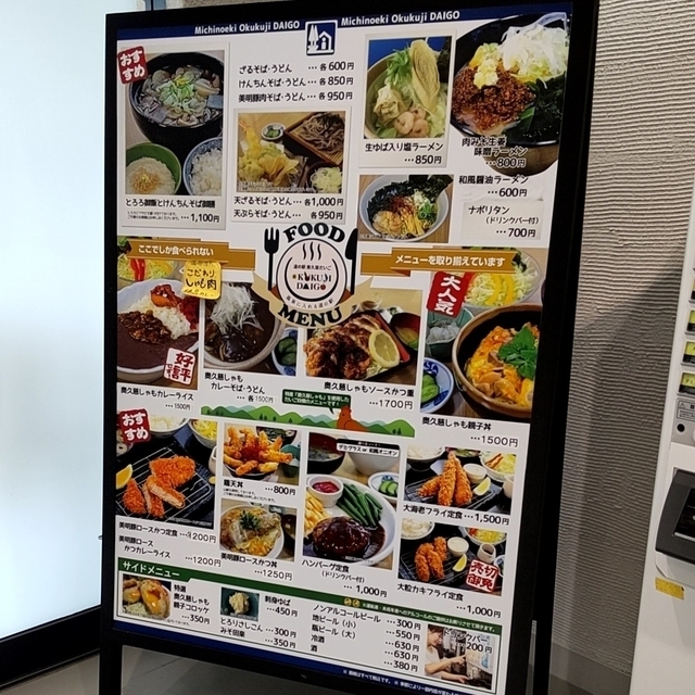 道の駅奥久慈だいごでお昼。 奥久慈しゃもをつかった料理や 常陸秋そばなど種類が豊富。 鮎の塩焼きもあります。