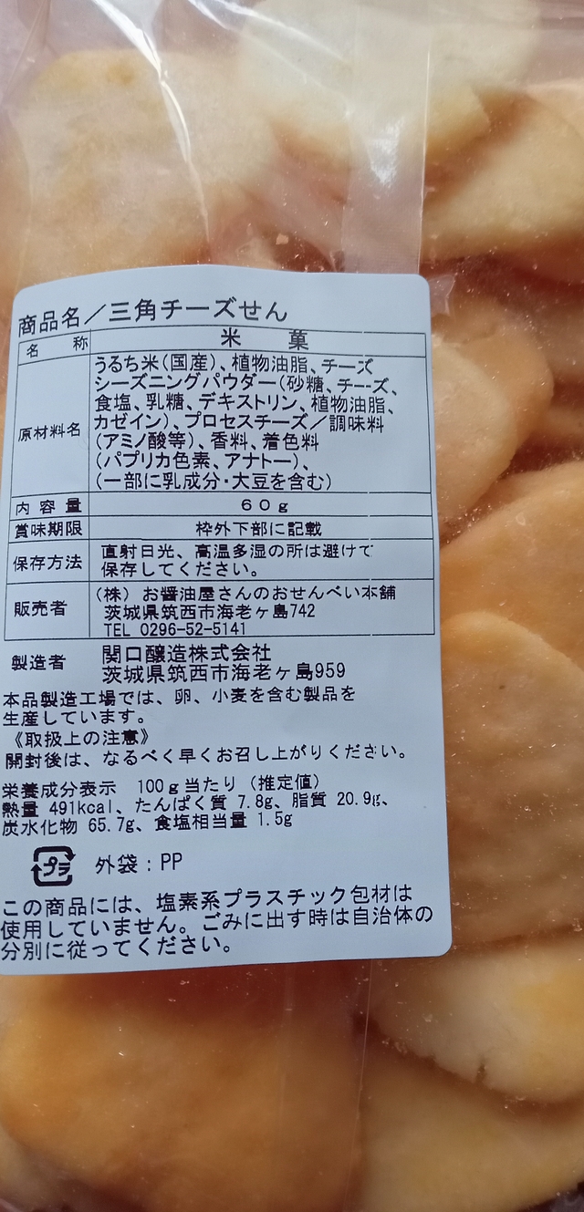 「三角チーズせん」を購入しました。三角の形で食べやすく、チーズの風味がとても美味しいです。オススメです!!