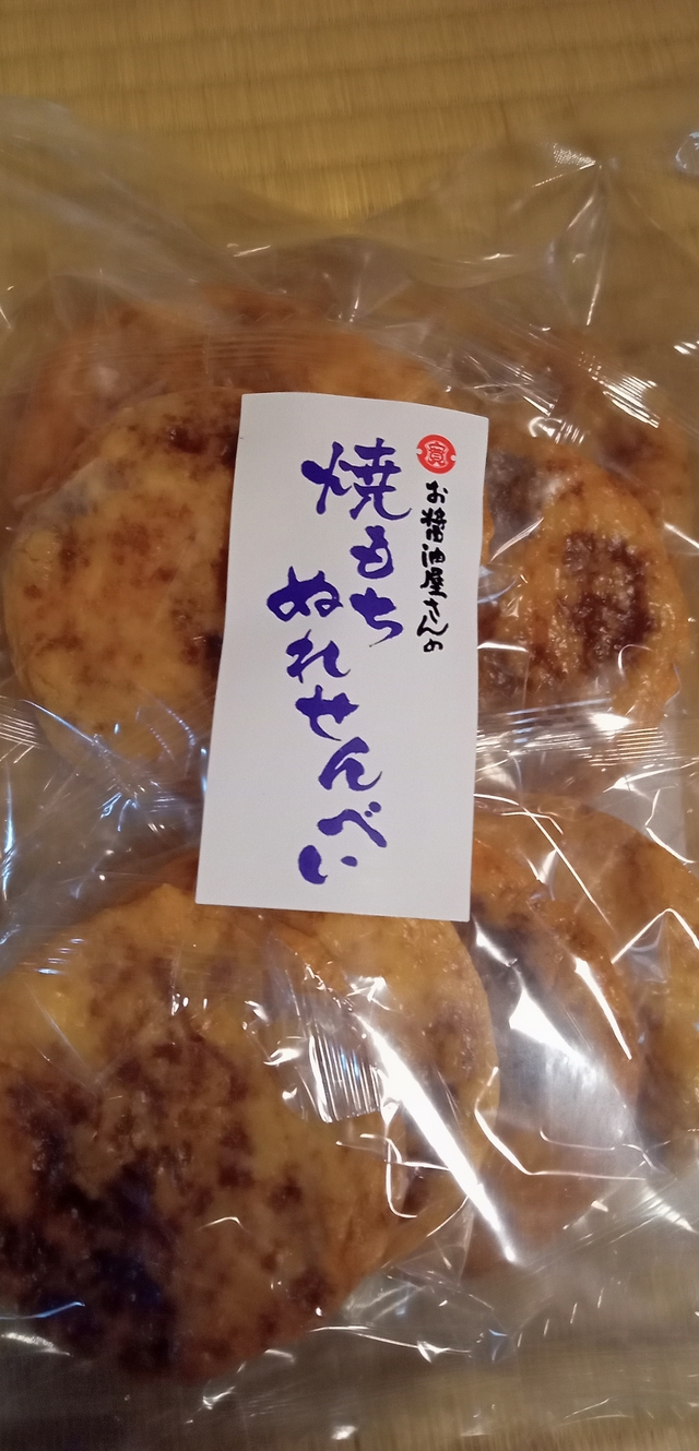 焼きもちぬれせんべいを購入しました。 しっとりとした食感で味付けがちょうどよくて食べる手が止まりませんでした。 お茶と合うので大事に食べようと思います。