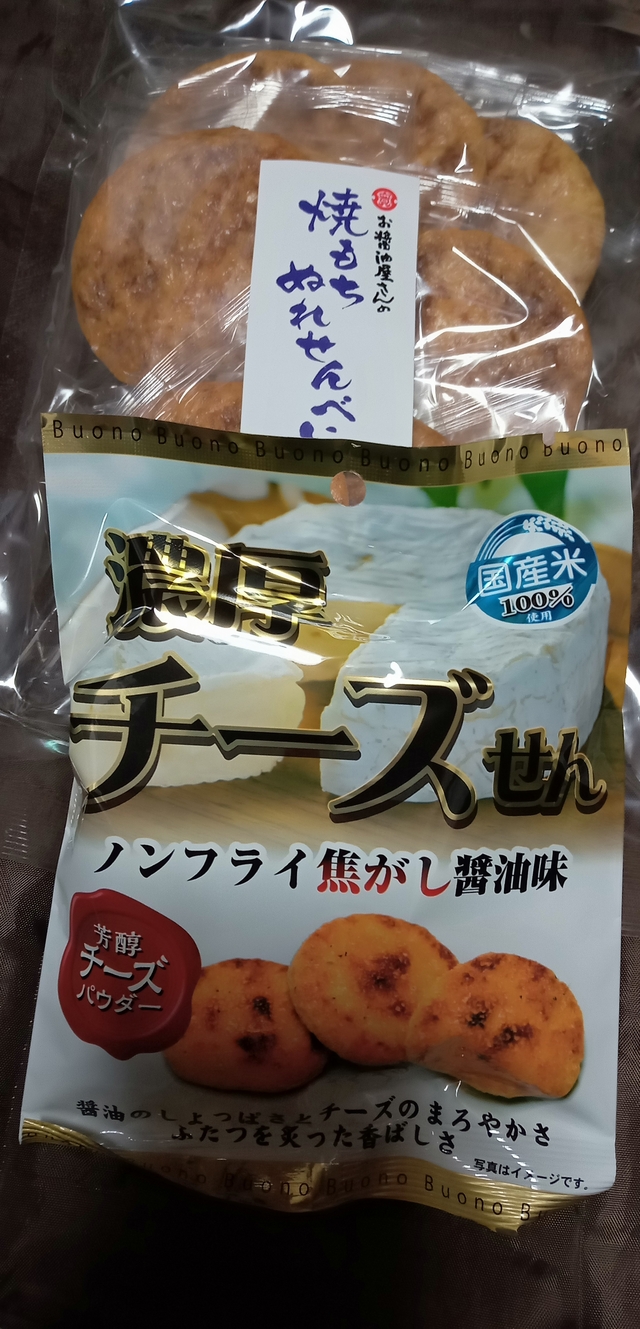 「焼きもちぬれせんべい」「濃厚チーズせん」を購入。ぬれせんべいは、しっとり感がクセになります。チーズせんは、濃厚でノンフライが嬉しいです。オススメです!!