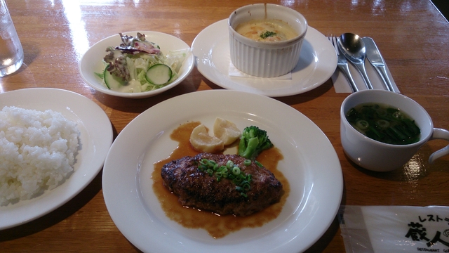 こちらは平日のランチがお薦めです。 値段は1000円ちょいでハンバーグ、ライス、お刺身、お味噌汁、珈琲。 ボリュームもあります♪ 女性の私でかなり満足します。 限定なので早めにお店に入った方が良いですね。 夜はお高めだけど平日のランチならお得です。 ソースはデミソースに変更も出来るので是非デミソースで食べてもらいたいですね。