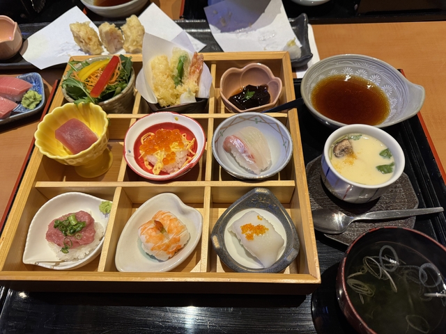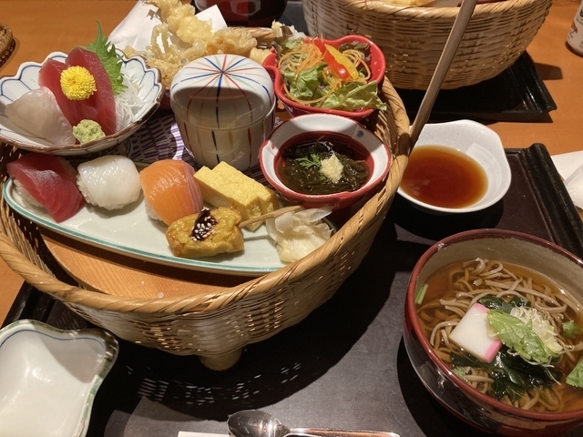ランチの花かご膳がおすすめ!美味しい天ぷらやてまり寿司などがかわいらしく盛り付けられていてちょこちょこ食べられて大満足です!値段もそこそこ安い!