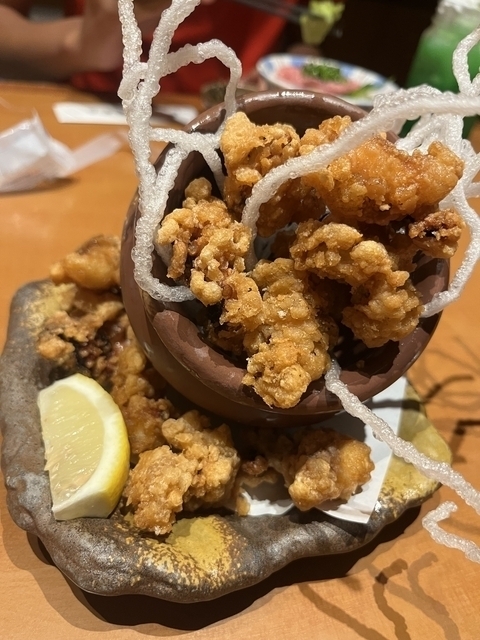 タコの唐揚げが予想以上のボリューム!衣サクサク中はジューシーでご飯のおかずにもお酒にも最高に合います!宴会にもおすすめ!