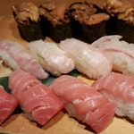 【料理】 サーモン ウニ えんがわ マグロカマ レンコンの天ぷら 野菜 モツ鍋 ナスの味噌田楽 などなど頼みました。 【味】 寿司ネタは一握りで結構な値段がします。 その割には美味しくもないし不味くもないって感じでした。 マグロカマも味が薄くて脂身も少なく 魚肉が固めでした。 レンコンはサクサクで美味しかったです。 モツ鍋はホルモンが好きなので美味しくいただきました。 もう少し大きかった方がよかったと思います。 ナスの味噌田楽は ナスと田楽が相性抜群ってことがわかりました。 濃いですけど美味しいです。